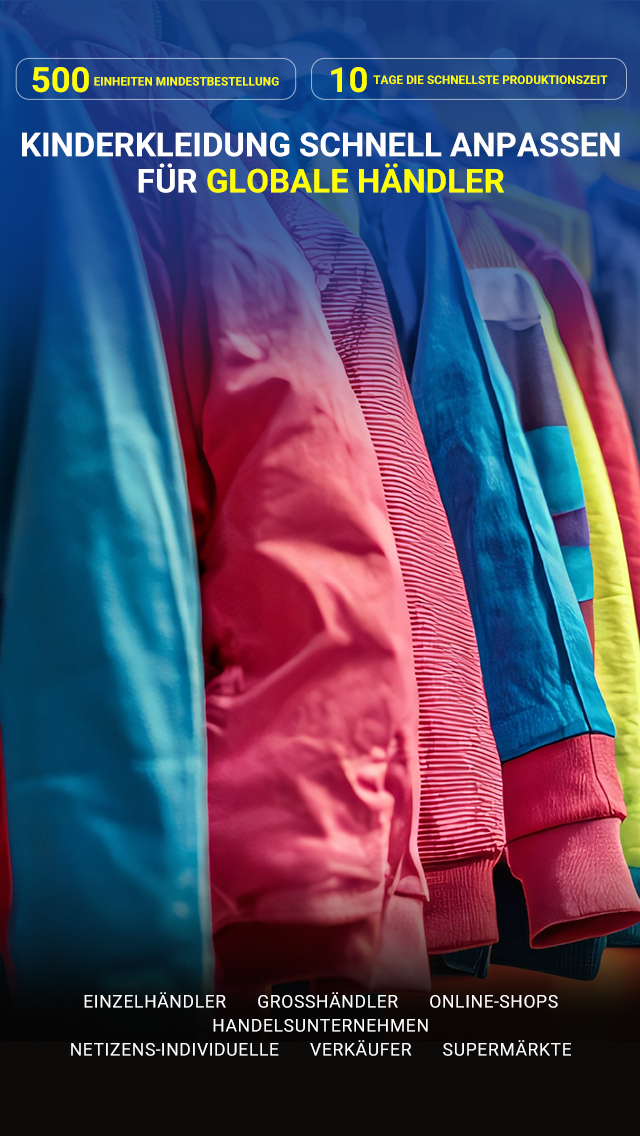 Mit einer enormen Produktionskapazität, fortschrittlichen Designfähigkeiten, einer umfassenden Lieferkette und einem effizienten Logistiksystem sind wir bestrebt, hochwertigen, maßgeschneiderten Kinderbekleidungsartikeln zu wettbewerbsfähigen Preisen an Händler weltweit zu liefern.